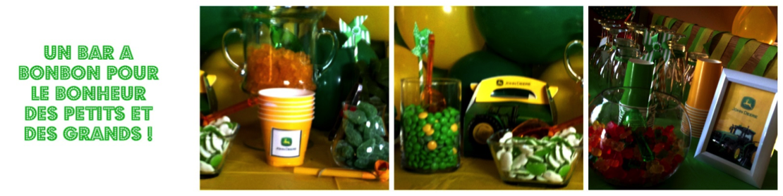 PSTTTTT: Les accessoires à l’effigie de John Deere ont été achetés via le site internet Open a Party La livraison était rapide et les photos étaient conformes à nos attentes. Les accessoires jaunes et verts ont été achetés au Dollorama.