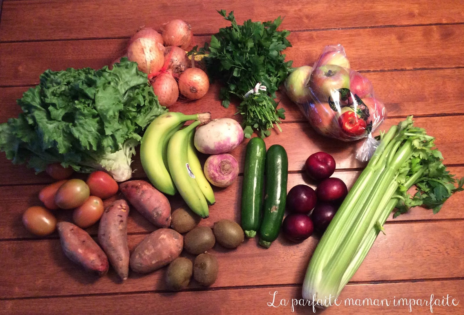 C’est super simple. On prend connaissance du point de chute le plus près de la maison (via leur site internet) et ensuite on passe faire le premier paiement avant la date limite de commande. C’est à ce moment que l’on décide du format de la boîte que l’on désire. La livraison se fait normalement la semaine suivante. Lorsque la journée de la livraison arrive, il ne suffit que de passer au point de chute avec nos sacs réutilisables et transférer le contenu de notre boîte. Je saisis l’occasion de mon passage au point de chute pour faire mon prochain paiement. Notez qu’il n’y a aucune obligation !
